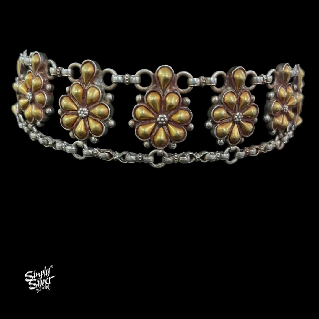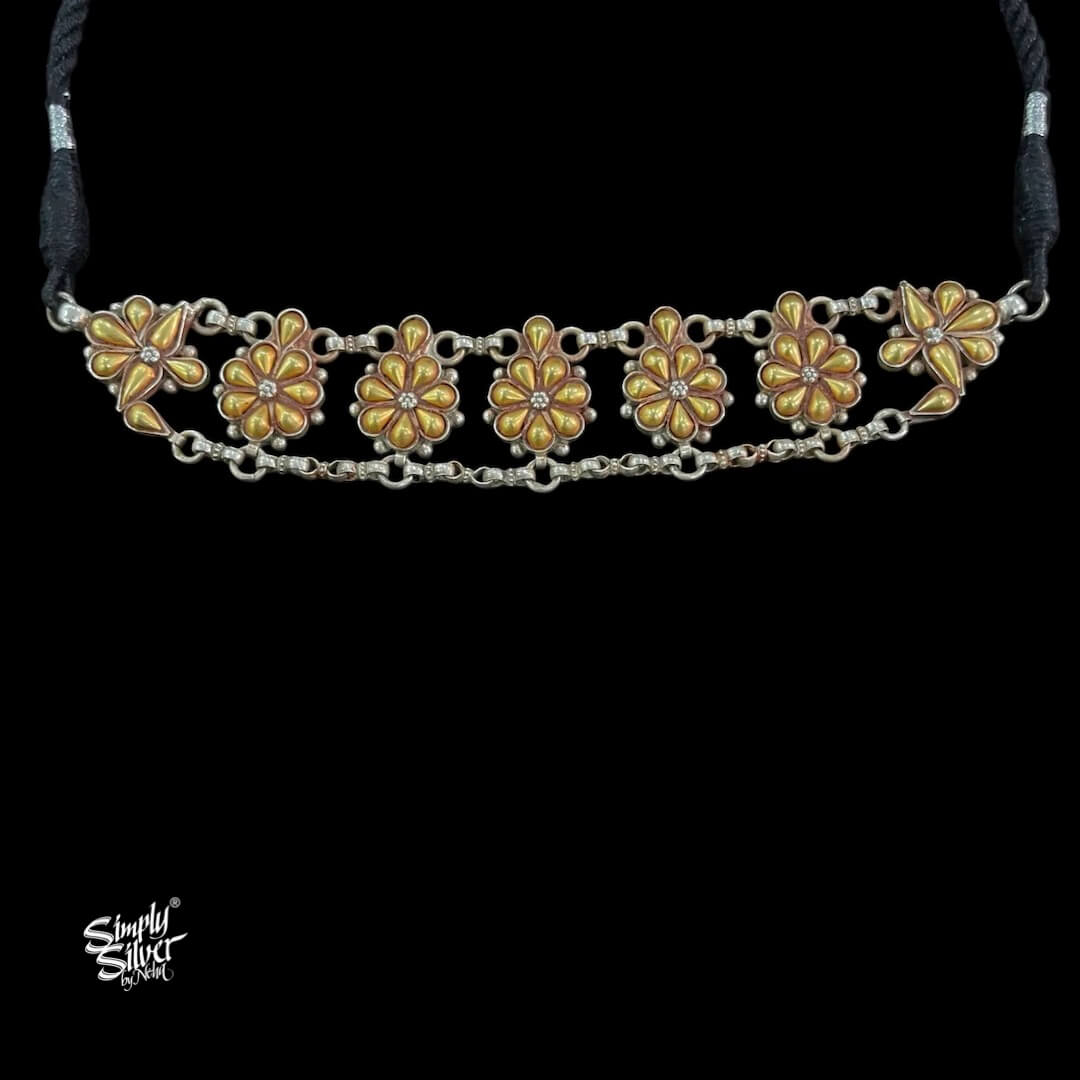 Bandhel Silver Dual Tone Flower & Chain Choker - MH5896
