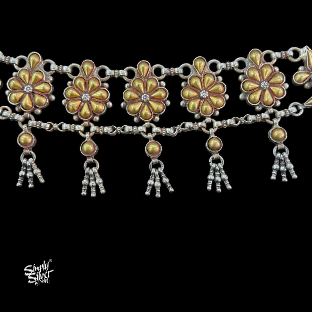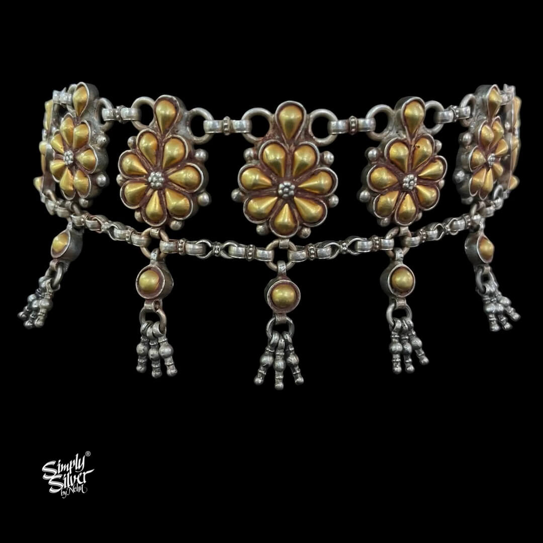 Bandhel Silver Dual Tone Flower & Chain Choker - MH5897
