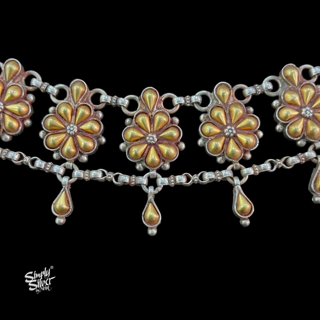 Bandhel Silver Dual Tone Flower & Chain Choker - MH5899