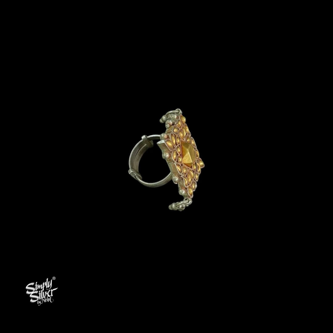 Bandhel Silver Dual Tone Flower & Ghungroos Ring - MH5901