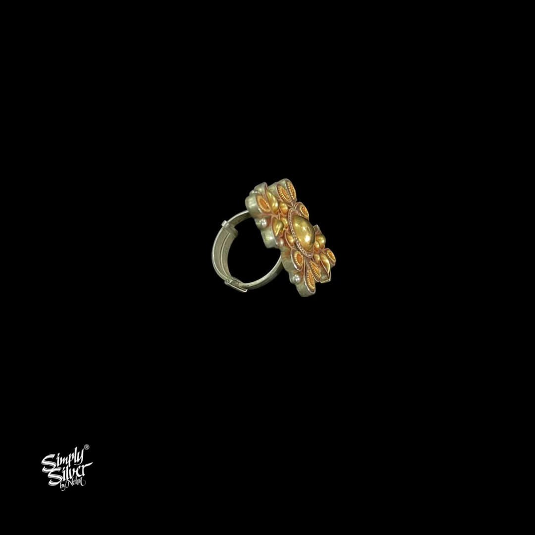 Bandhel Silver Dual Tone Flower Ring - MH5903