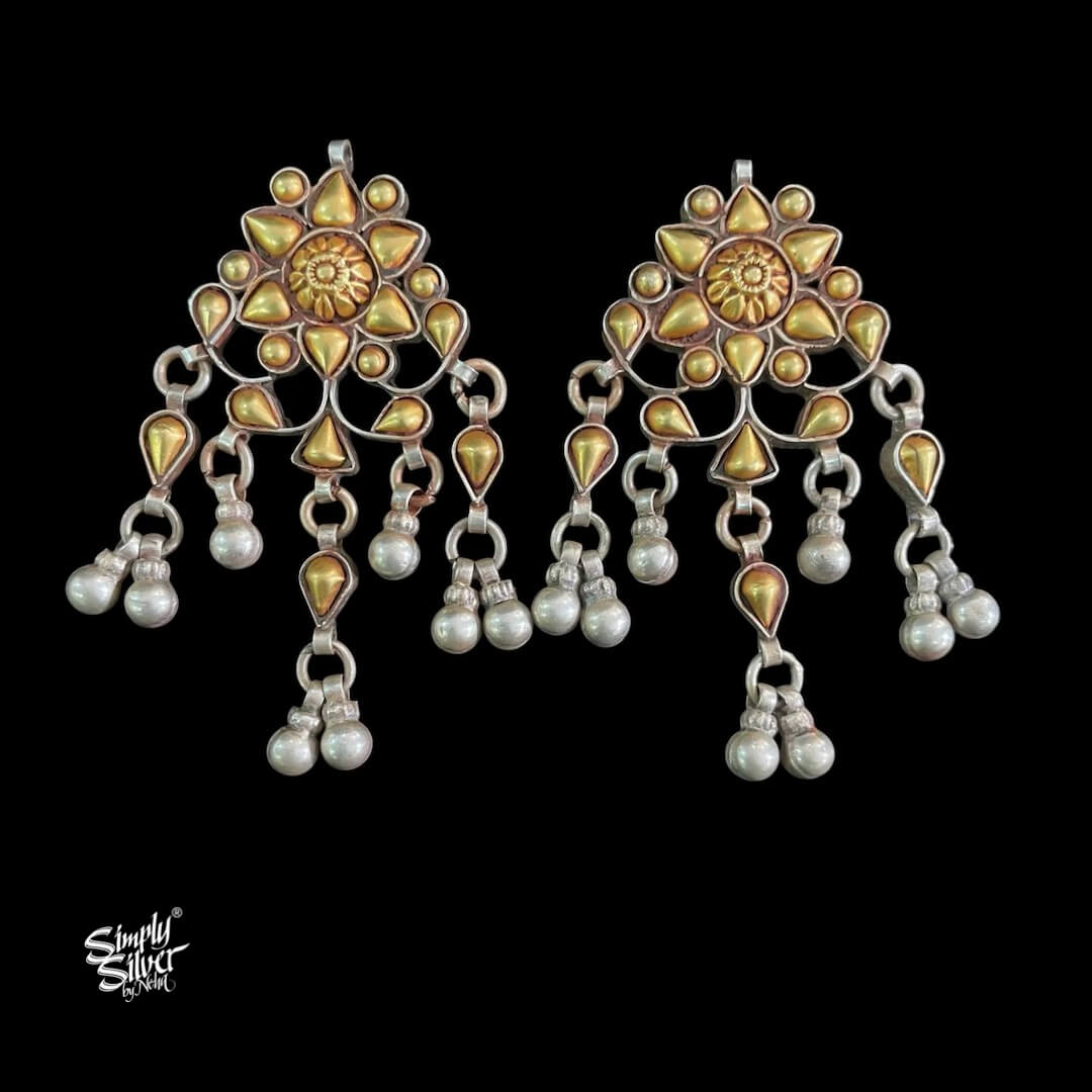 Bandhel Silver Dual Tone Flower with Ghungroos Earrings - MH5874