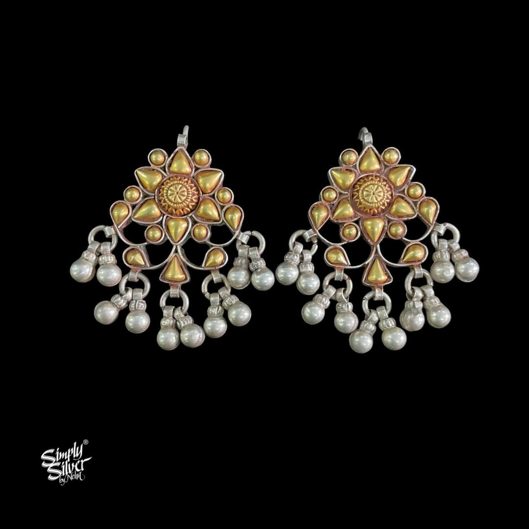 Bandhel Silver Dual Tone Flower with Ghungroos Earrings - MH5881
