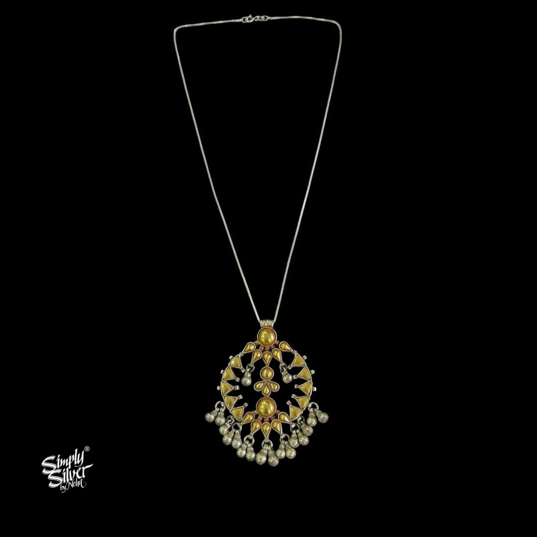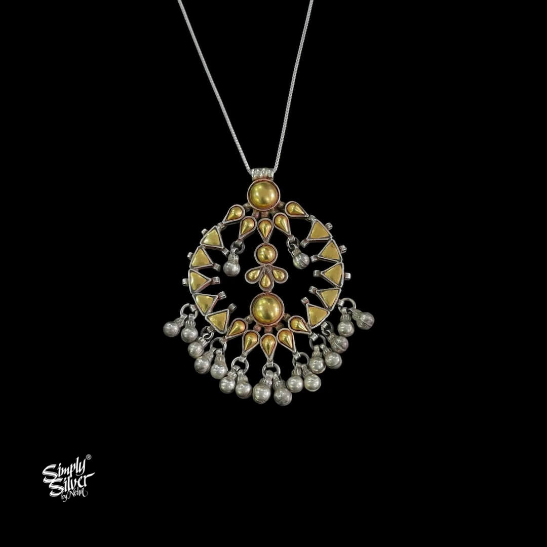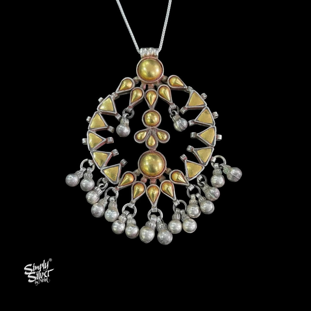 Bandhel Silver Dual Tone Round Flower & Ghungroos Pendant with Chain - MH5924