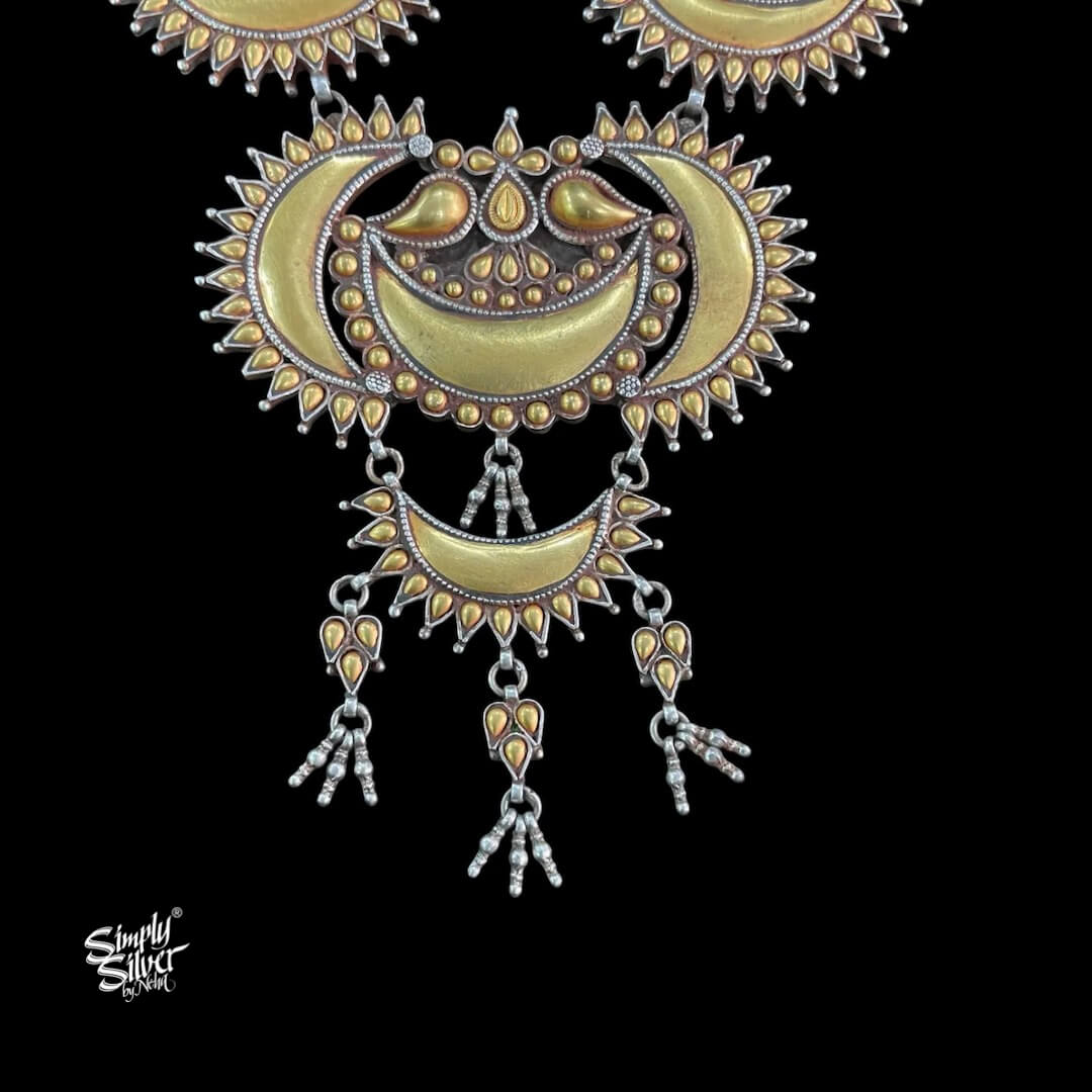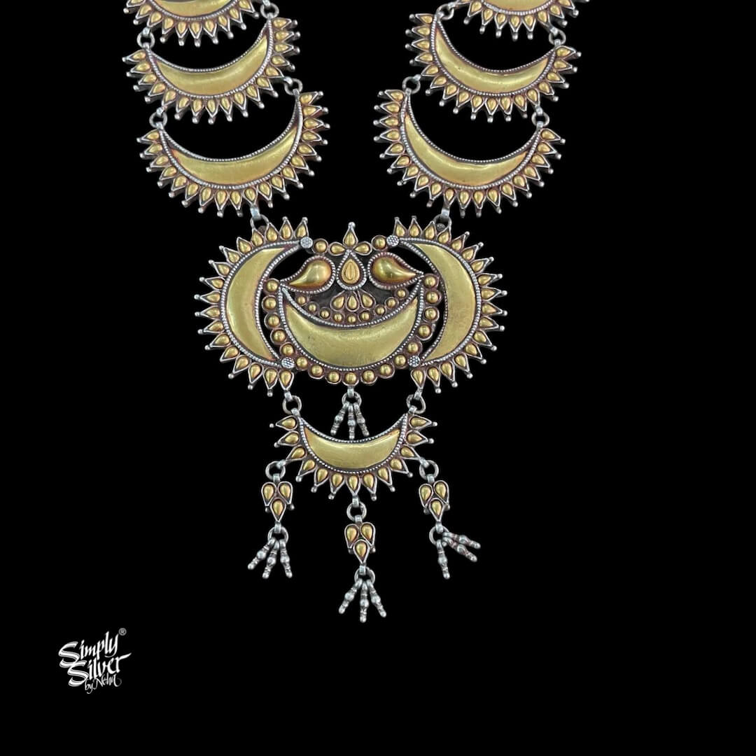 Bandhel Silver Statement Dual Tone Multi Layer Chaand Necklace - MH5892