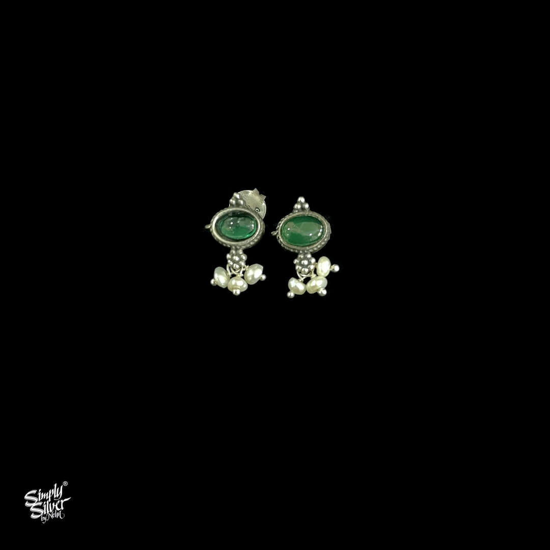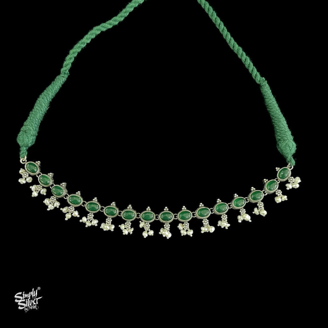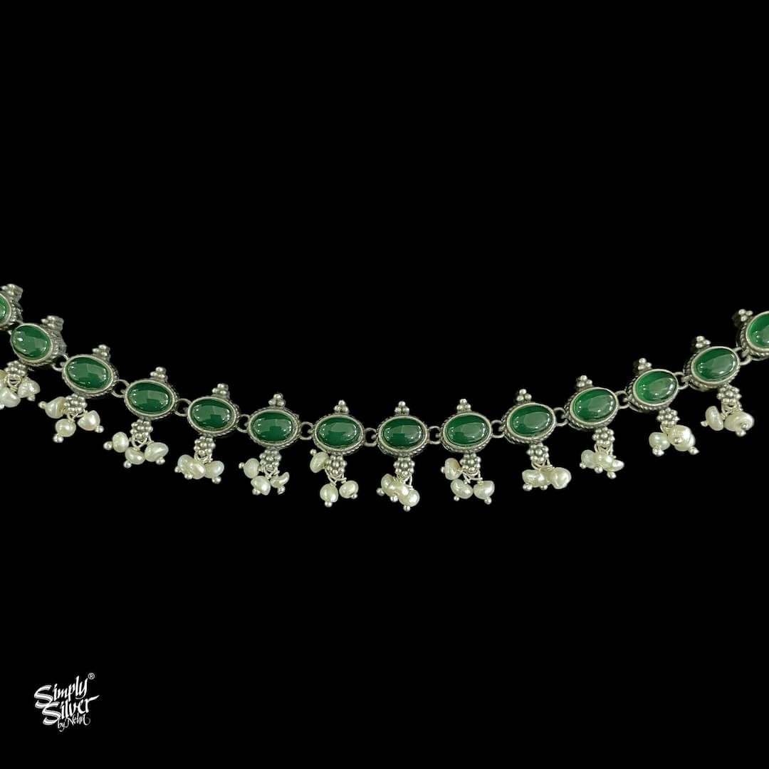Emerald Colored Stones & Pearls Choker & Earring Set