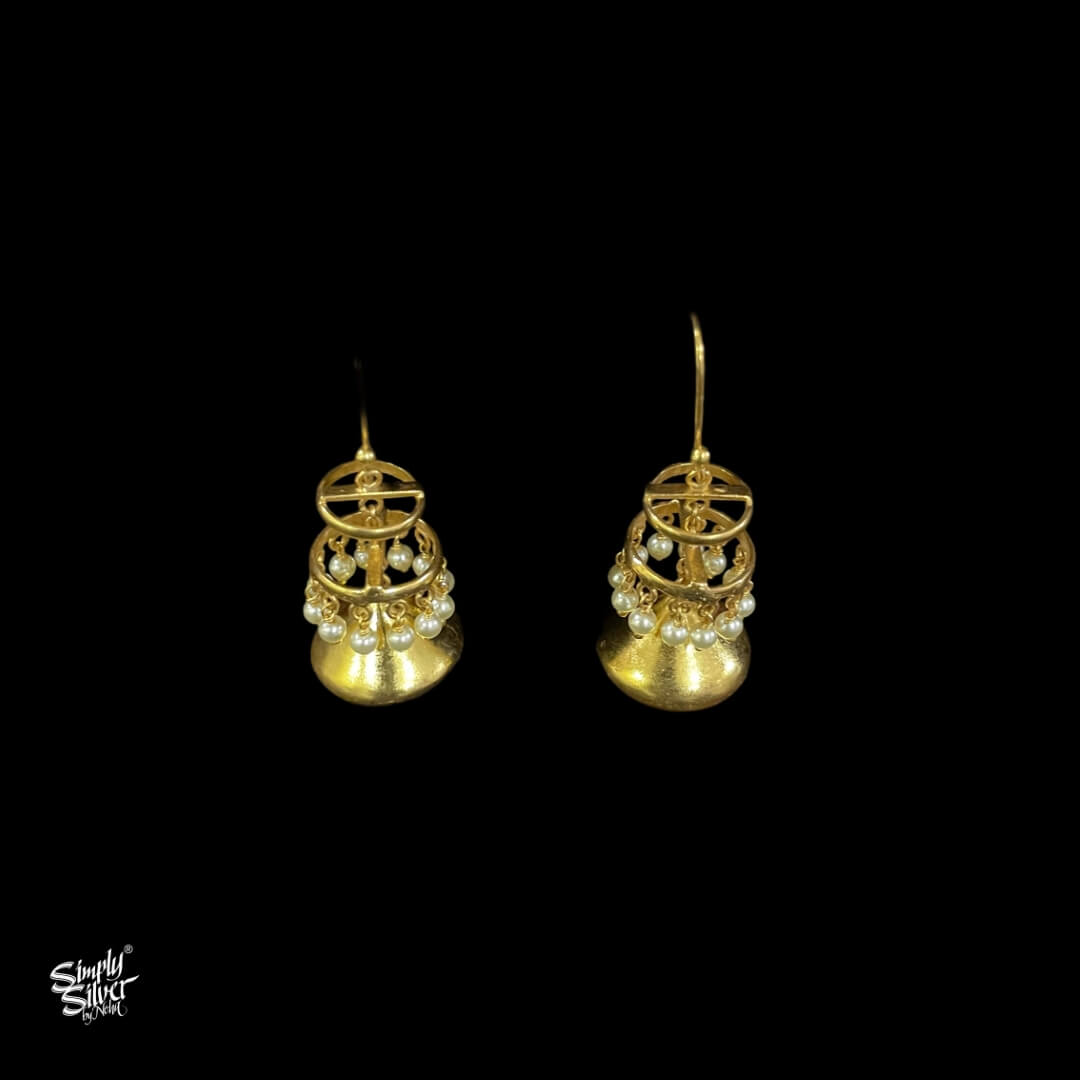 Increase quantity for Gold Polish Hoops With Pearl & Golden Bead Drop - MH4188