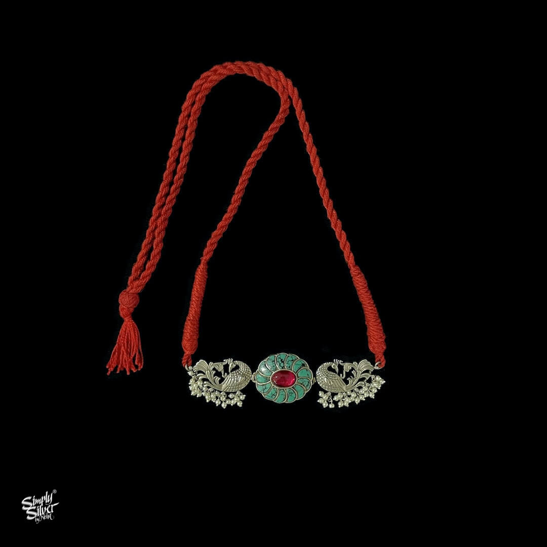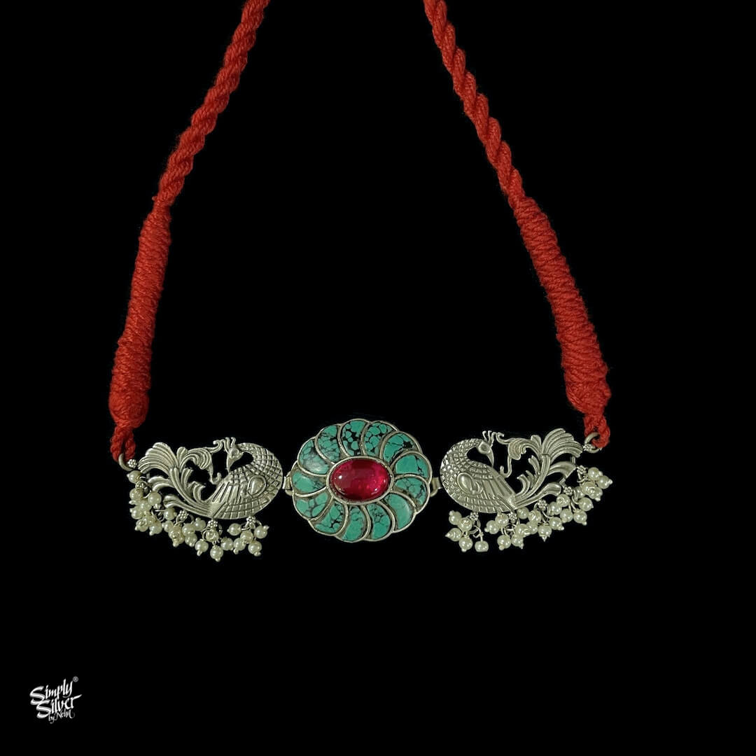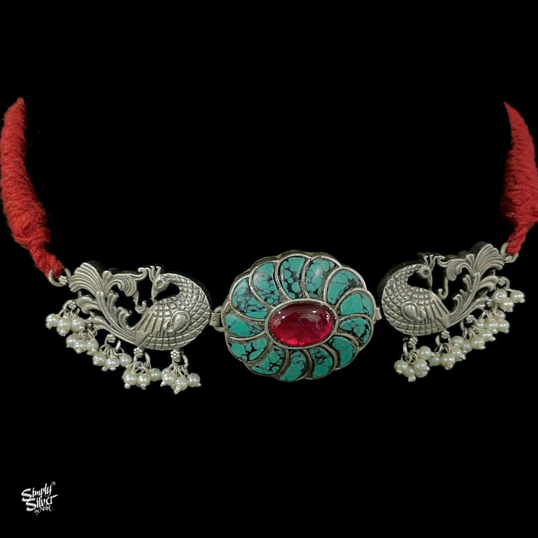 Kundan work Flower with Silver Peacocks & Pearls Statement Necklace