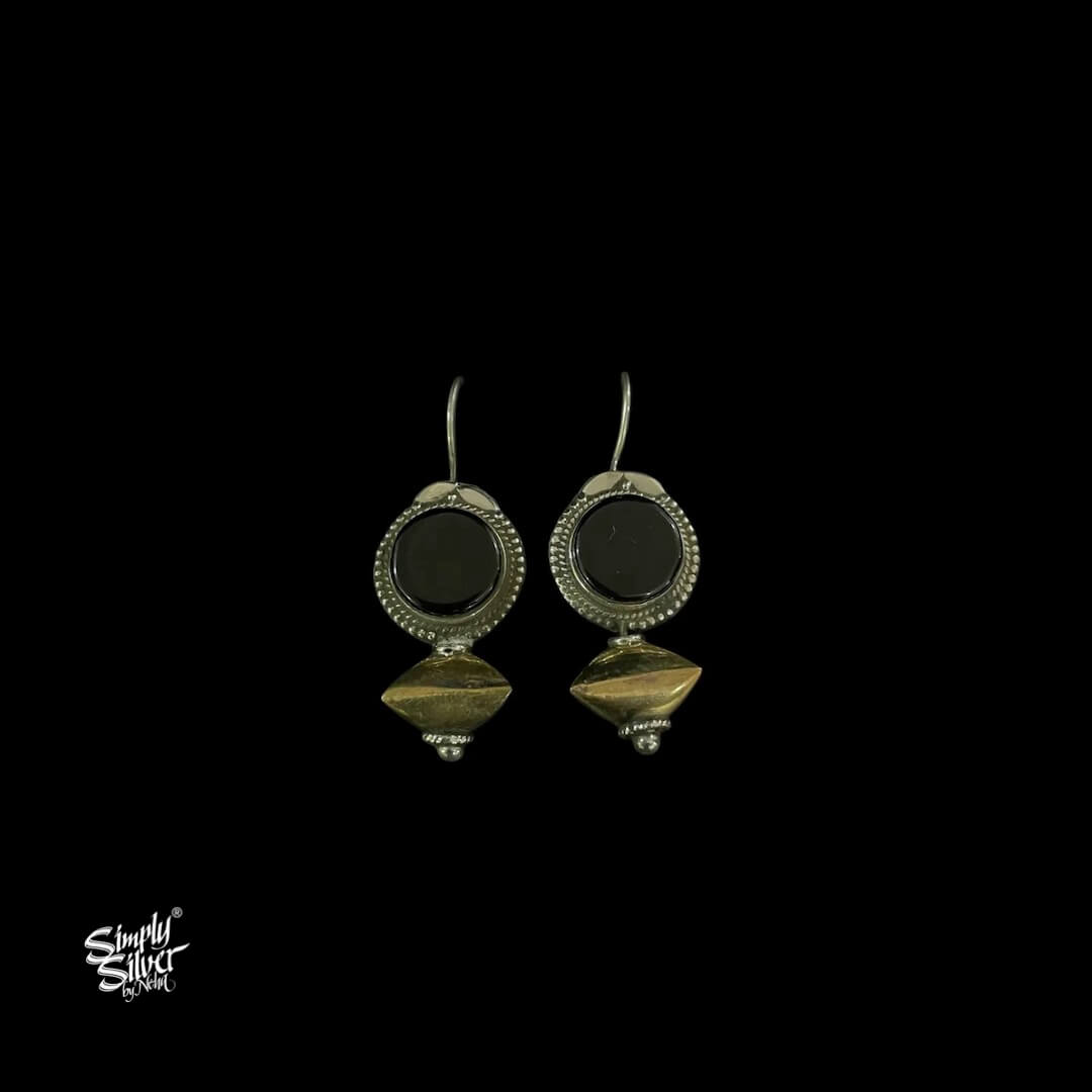 Silver Black Round Stone with Copper & Silver Fusion Bead - MH5939