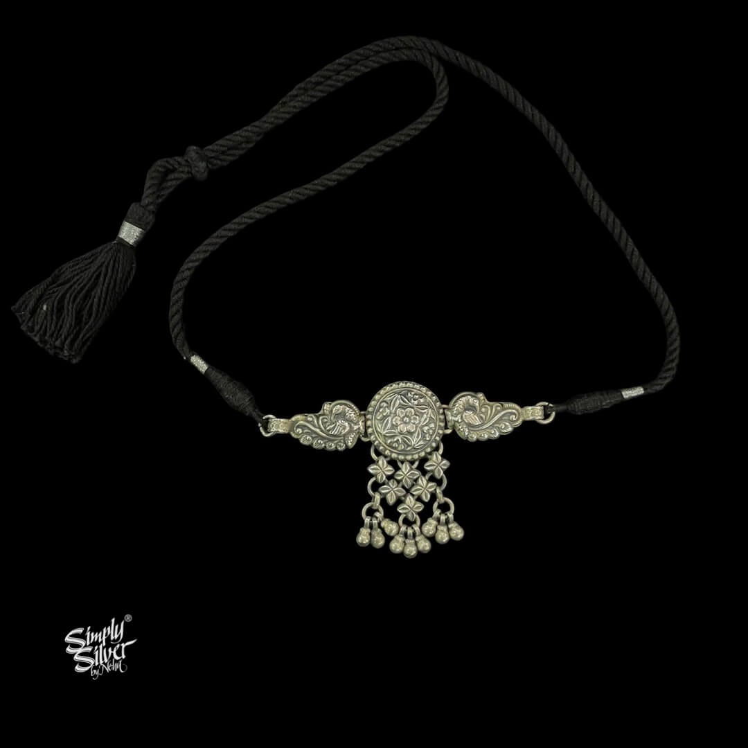 Silver Center Flower Ghungroos & Peacocks Choker with Earrings Set