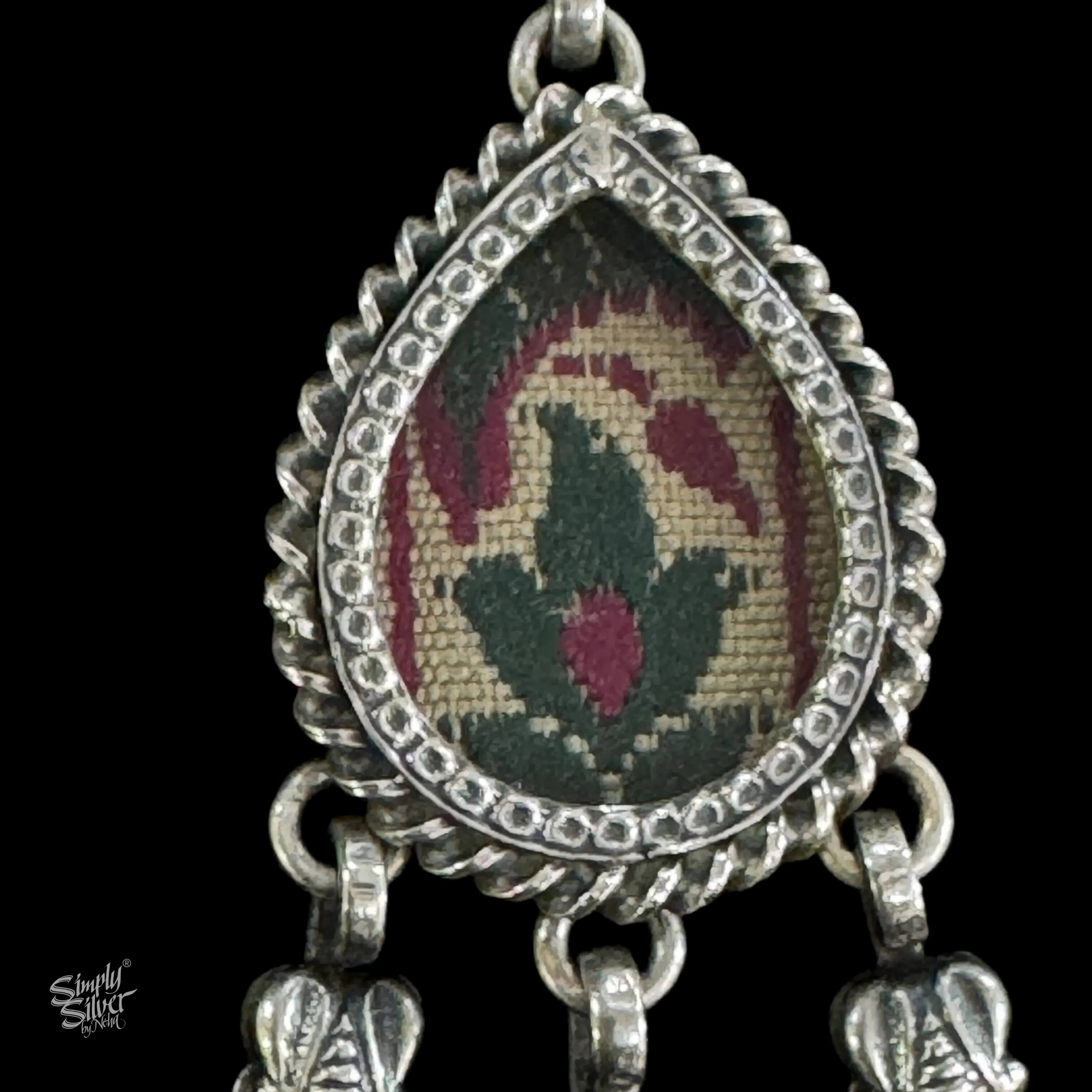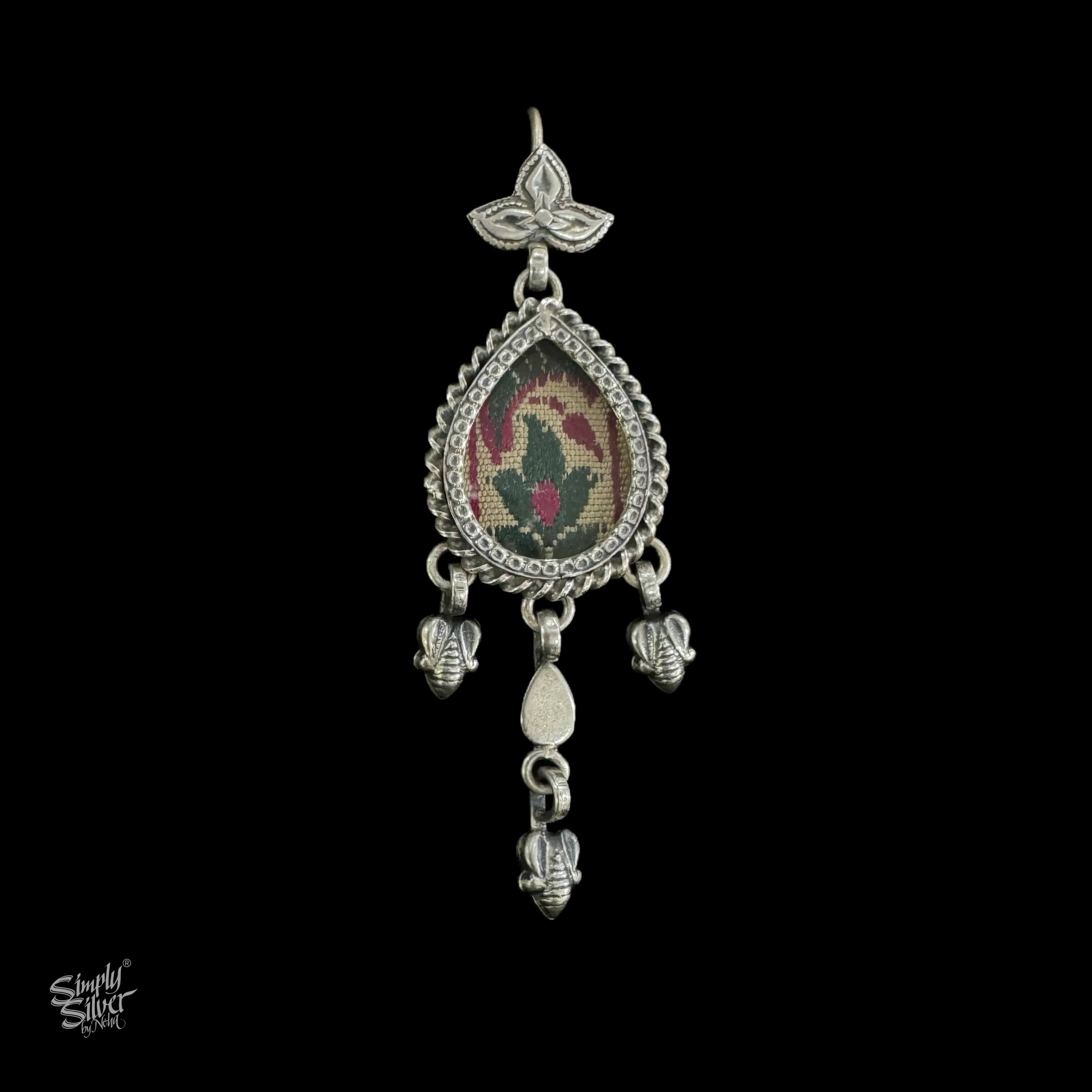Silver Flower with Hand Knitted Fabric Glass & Danglers