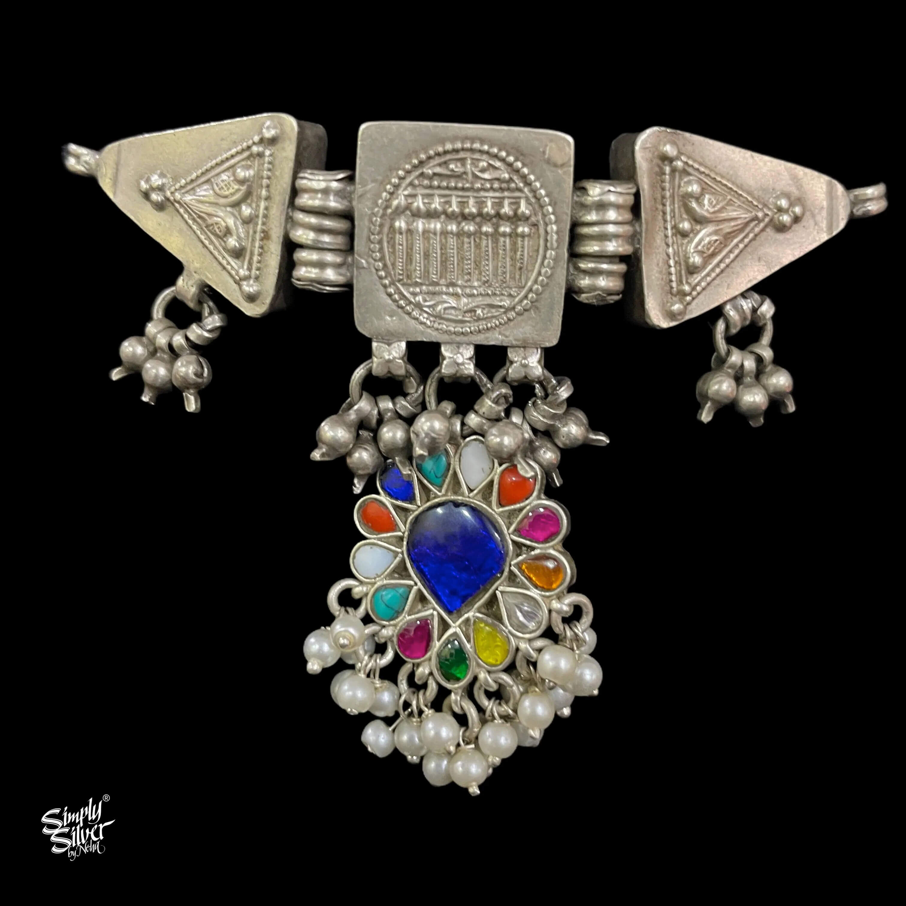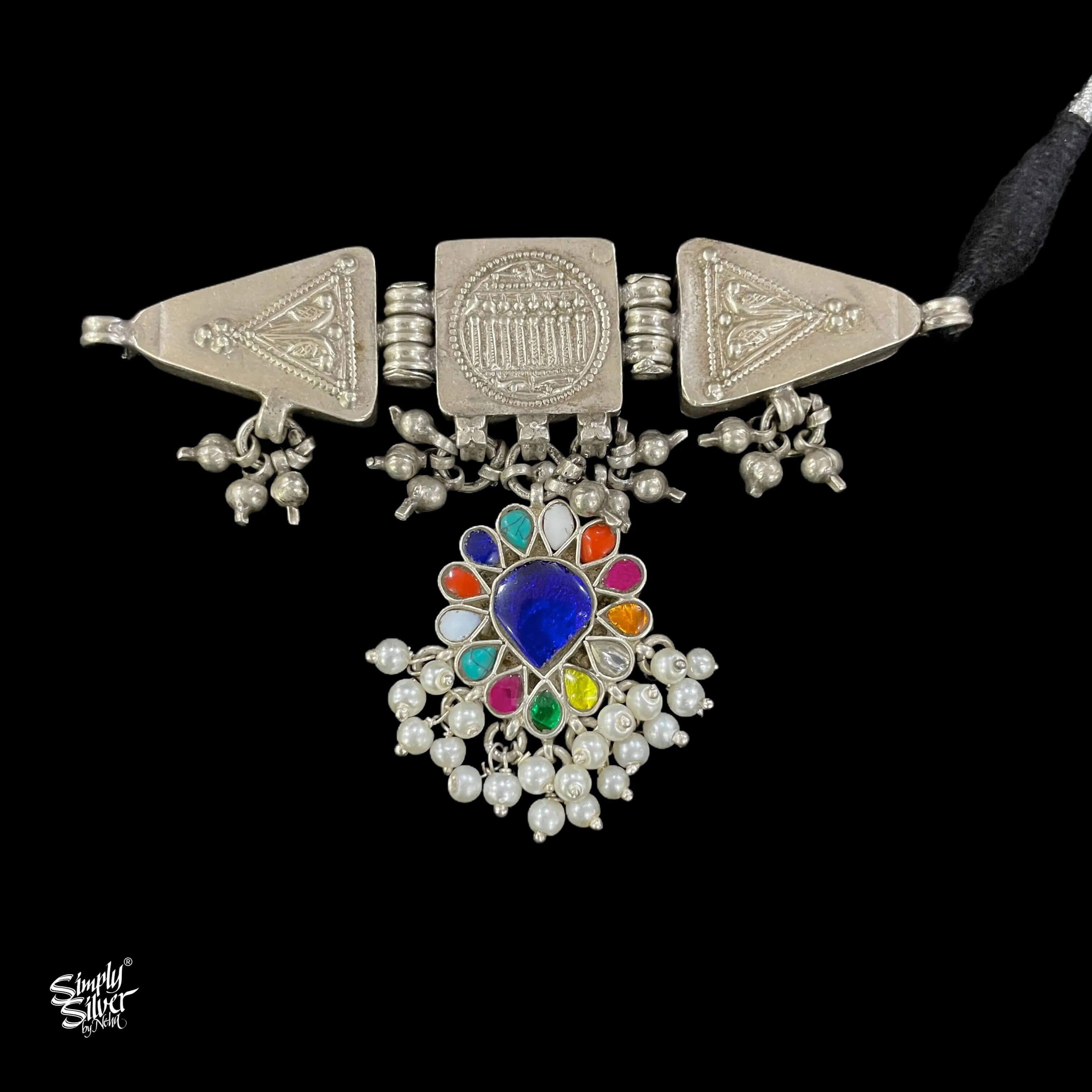 Silver Ghungroos Choker With Multi Color Kundan & Pearls - MH5326