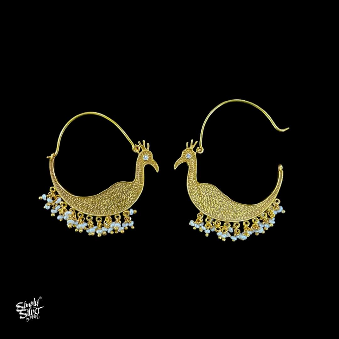 Silver Gold Polish Bali with Polki Stone Eye Peacock & Pearls