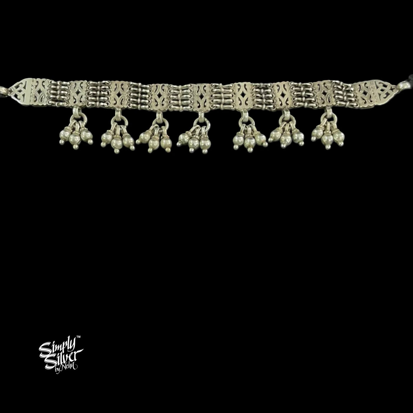 Increase quantity for Silver Jaali Choker with Ghungroos - MH5606