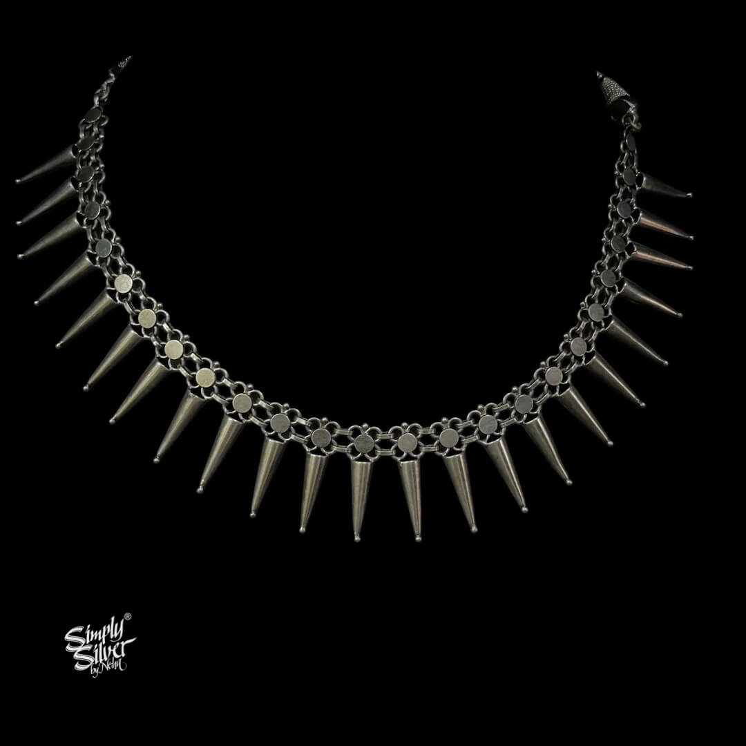 Silver Jaali Flower with Conical Choker Earring Set