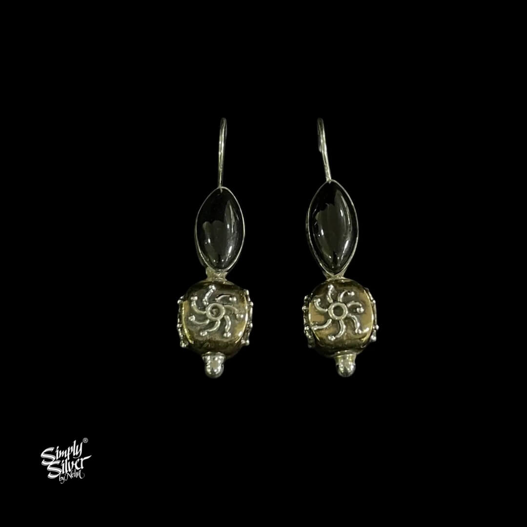 Silver Oval Shape Black Stone with Copper & Silver Fusion Floral Bead - MH5932