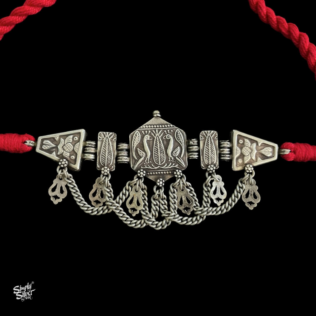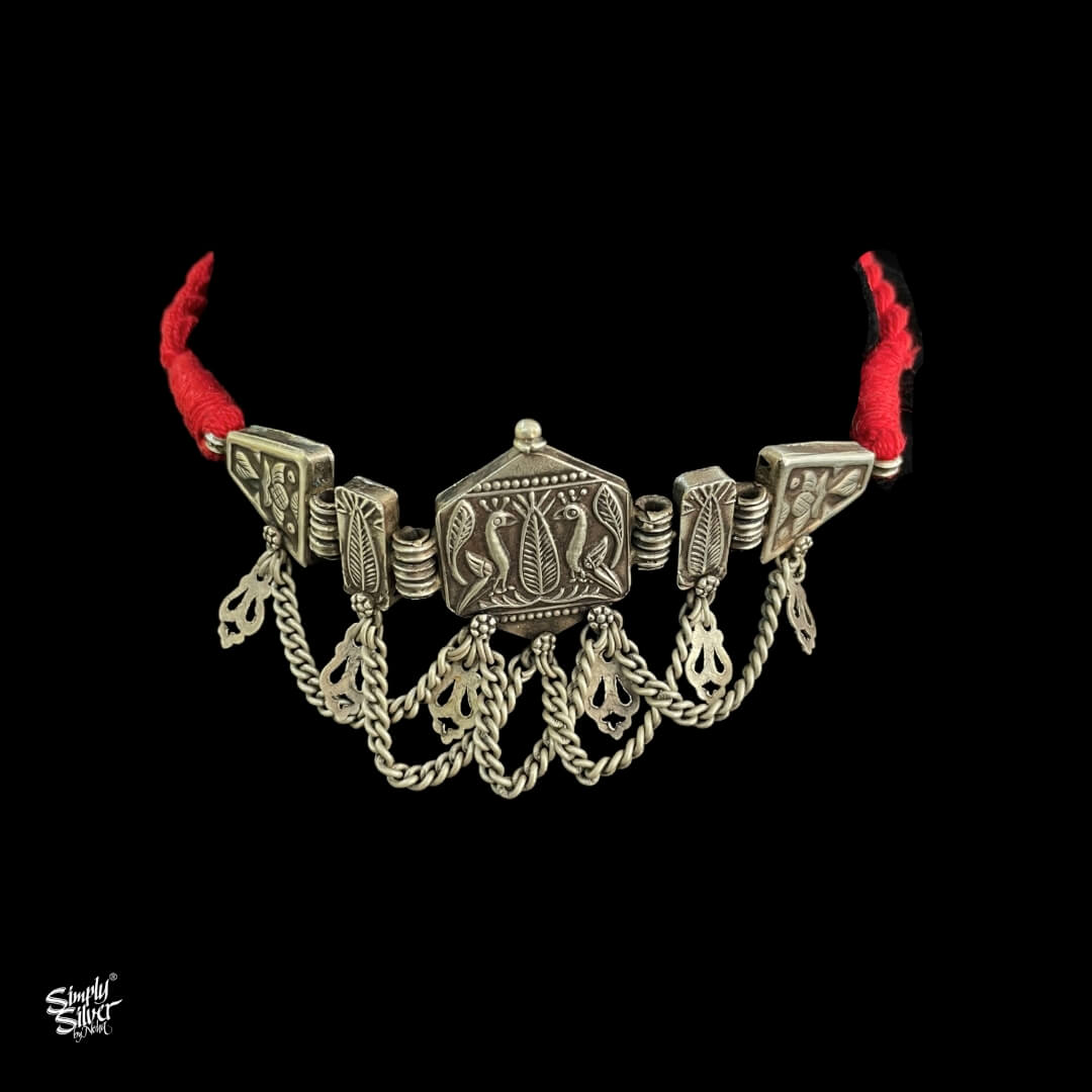 Increase quantity for Silver Peacock Choker with Red Thread - MH3401
