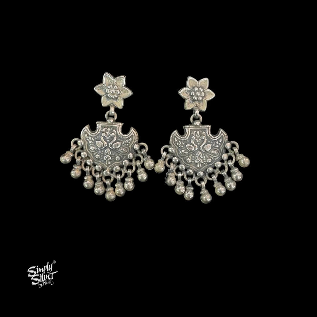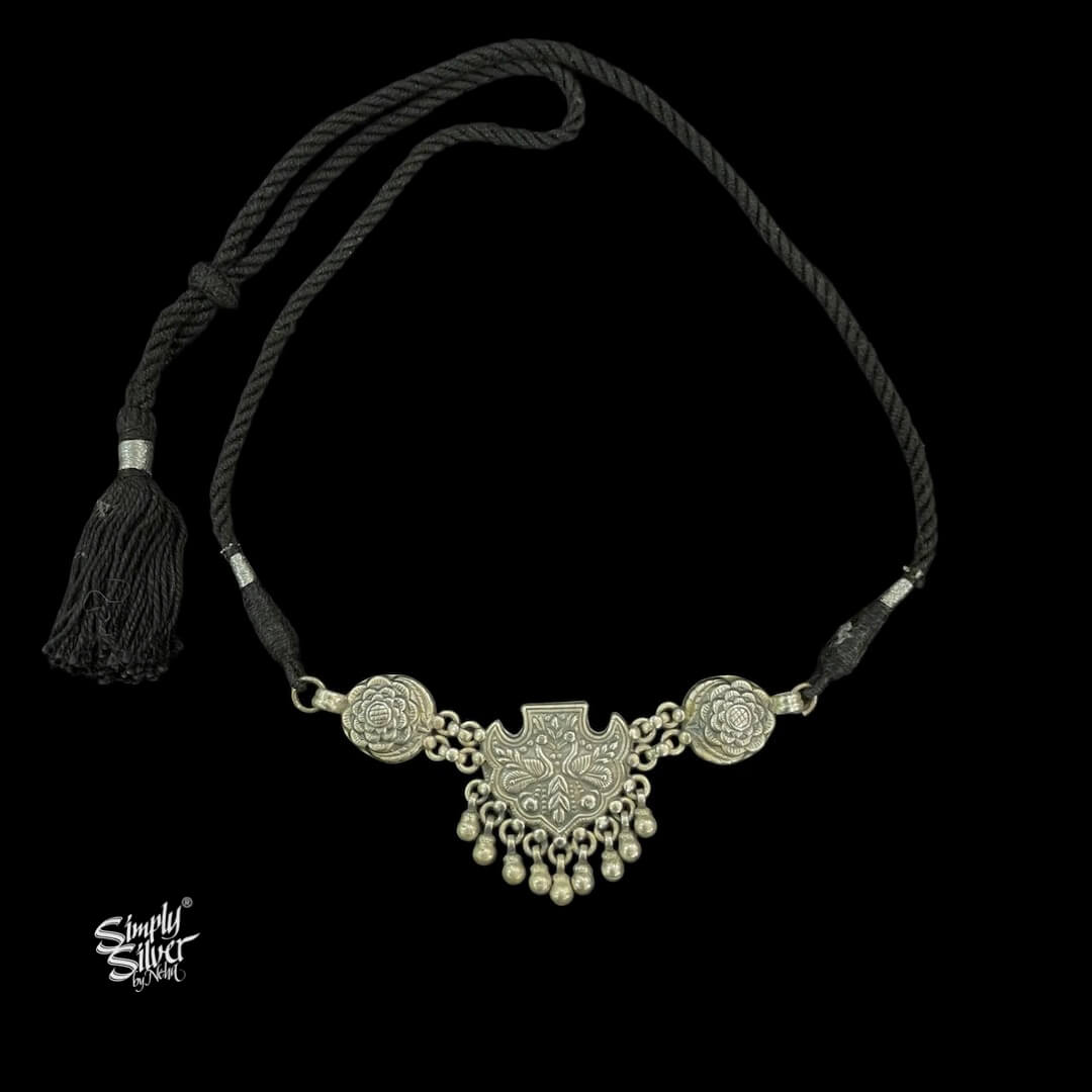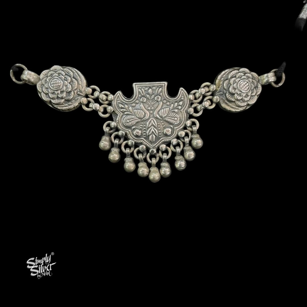 Silver Peacocks & Flowers Ghungroos Choker Earrings Set