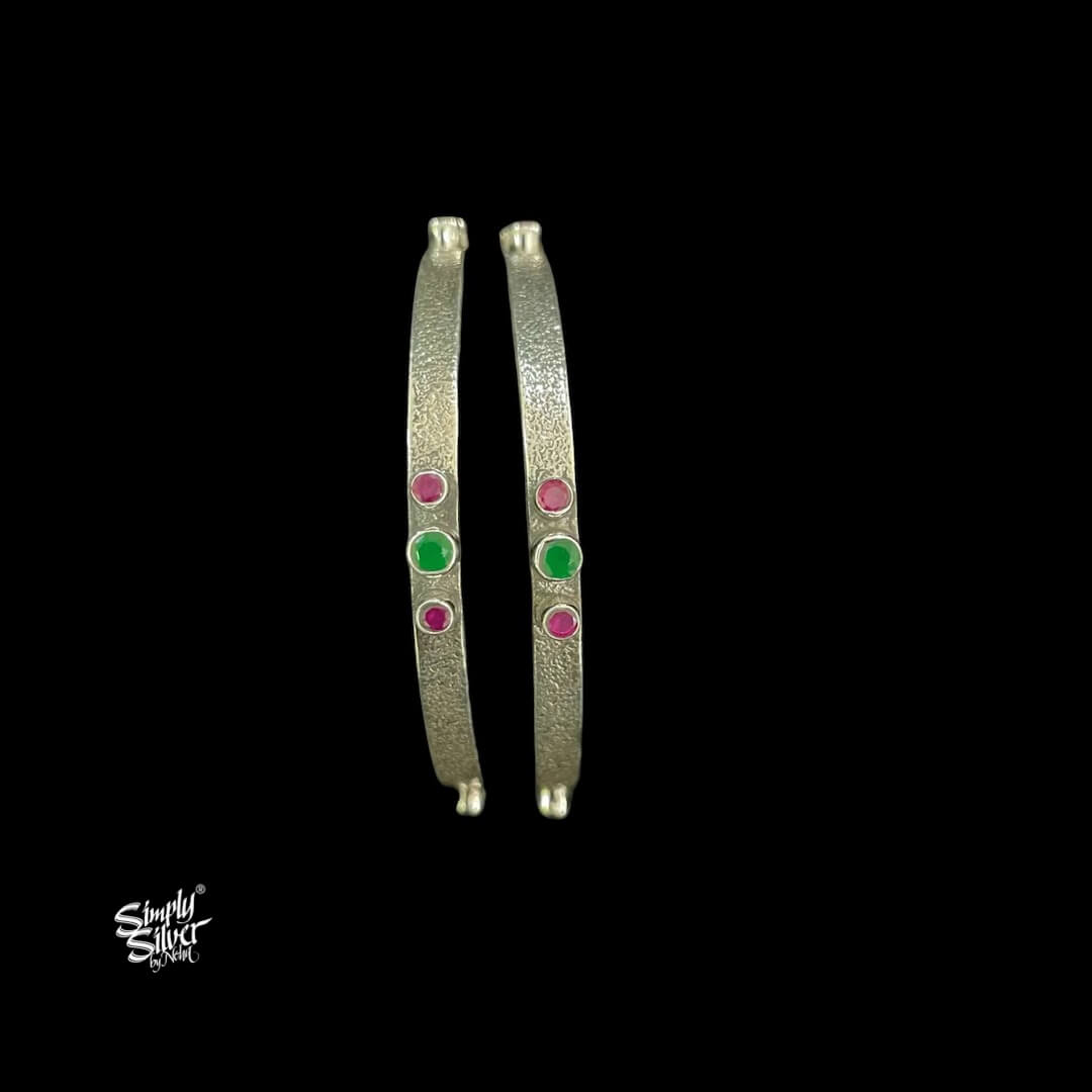 Silver Pink & Green Color Stone Bangles Pair