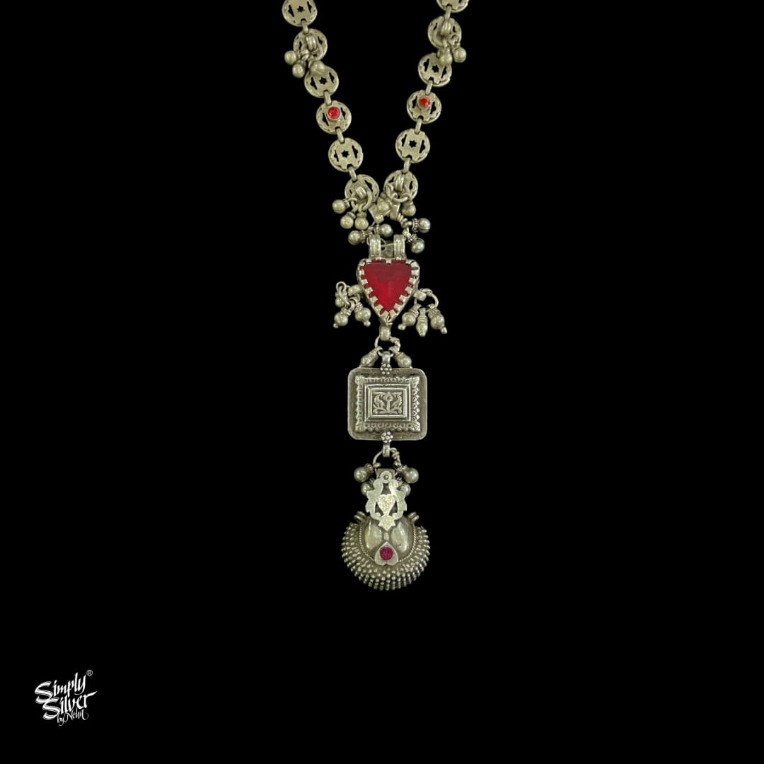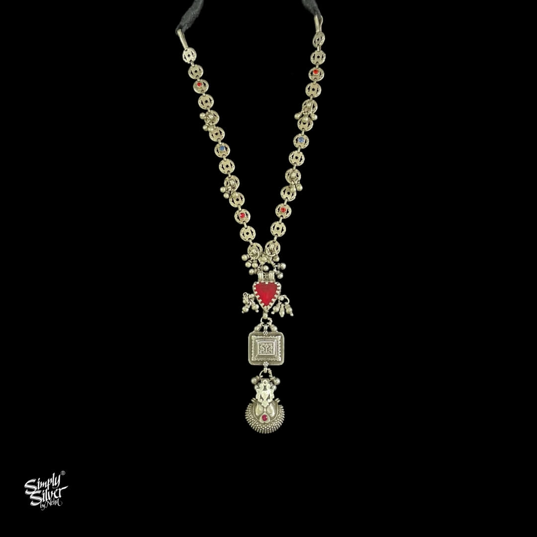 Statement Silver Multi Color Stones Chain Ghungroos Necklace With Traditional Hanging Borla