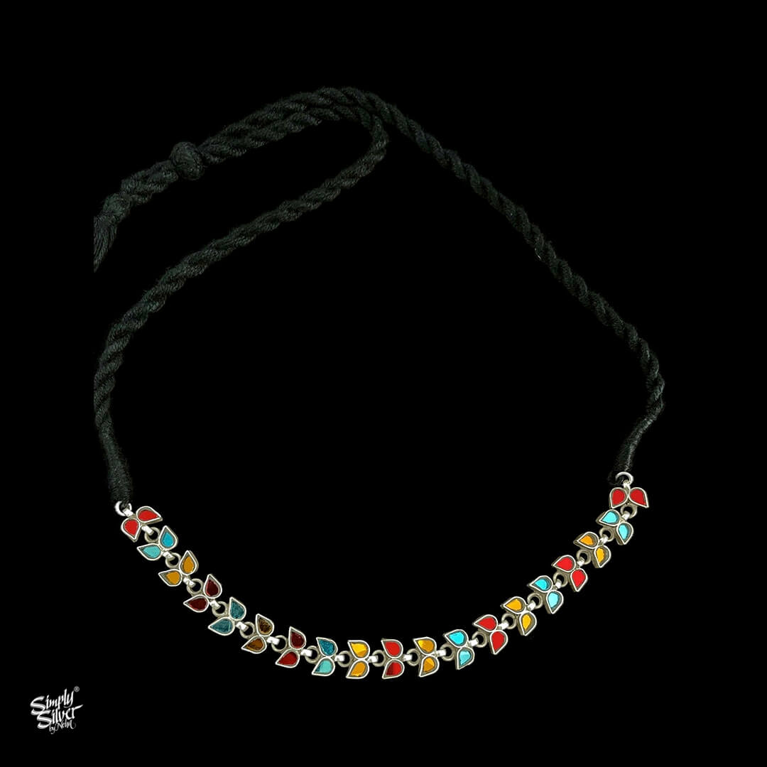 Traditional Rajasthani Multi Color Glass Set of Choker & Earrings