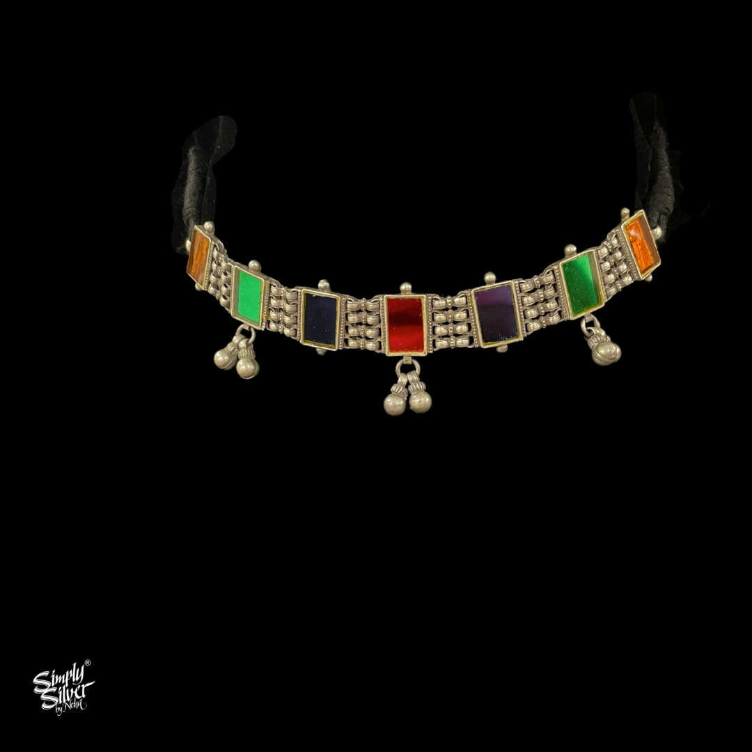 Traditional Rajasthani Multi Color Glass Silver Choker - MH3850