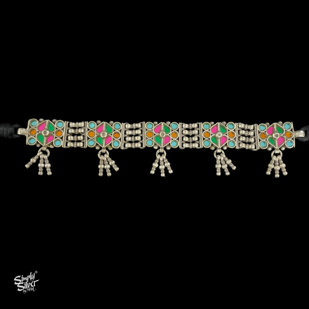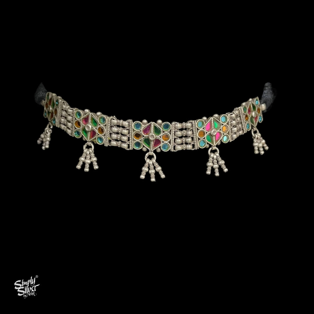 Traditional Rajasthani Multi Color Glass Silver Choker