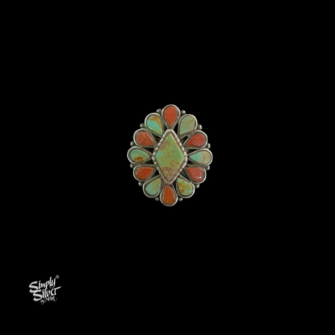 Increase quantity for Turquoise & Red Coral Flower Ring - MH5851